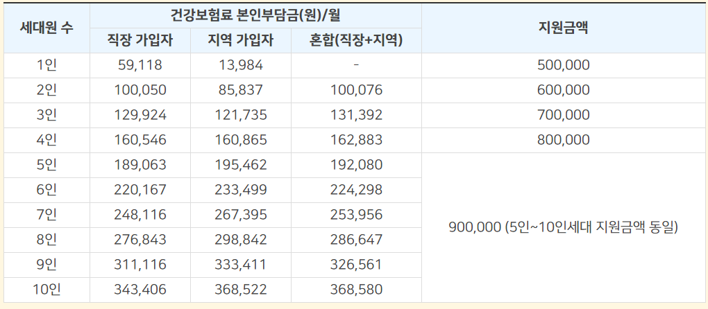 2020년 3월 30일 0시 기준 대구시에 주민등록을 둔 기준중위소득 100% 이하 건강보험료 납부 세대가 신청이 가능 합니다. 하단에 세대원수별 건강보험료 기준을 확인하시기 바랍니다.