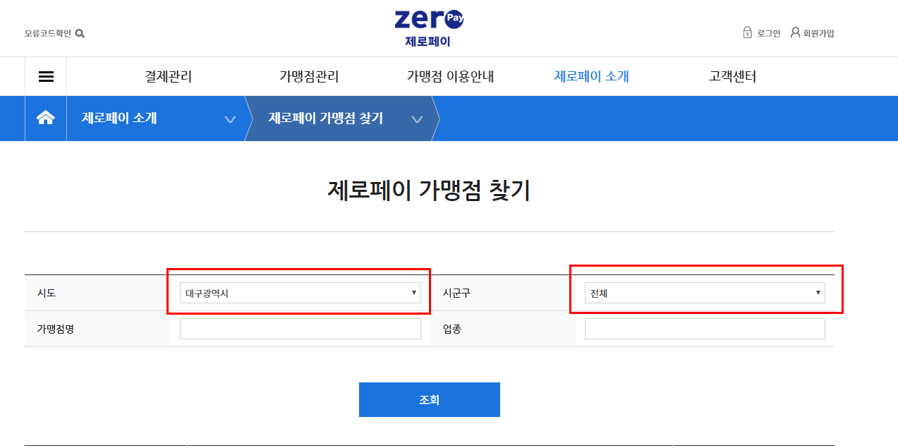 제로페이 가맹점 찾기를 클릭하시어 가맹점 찾기로 접속 해주세요.