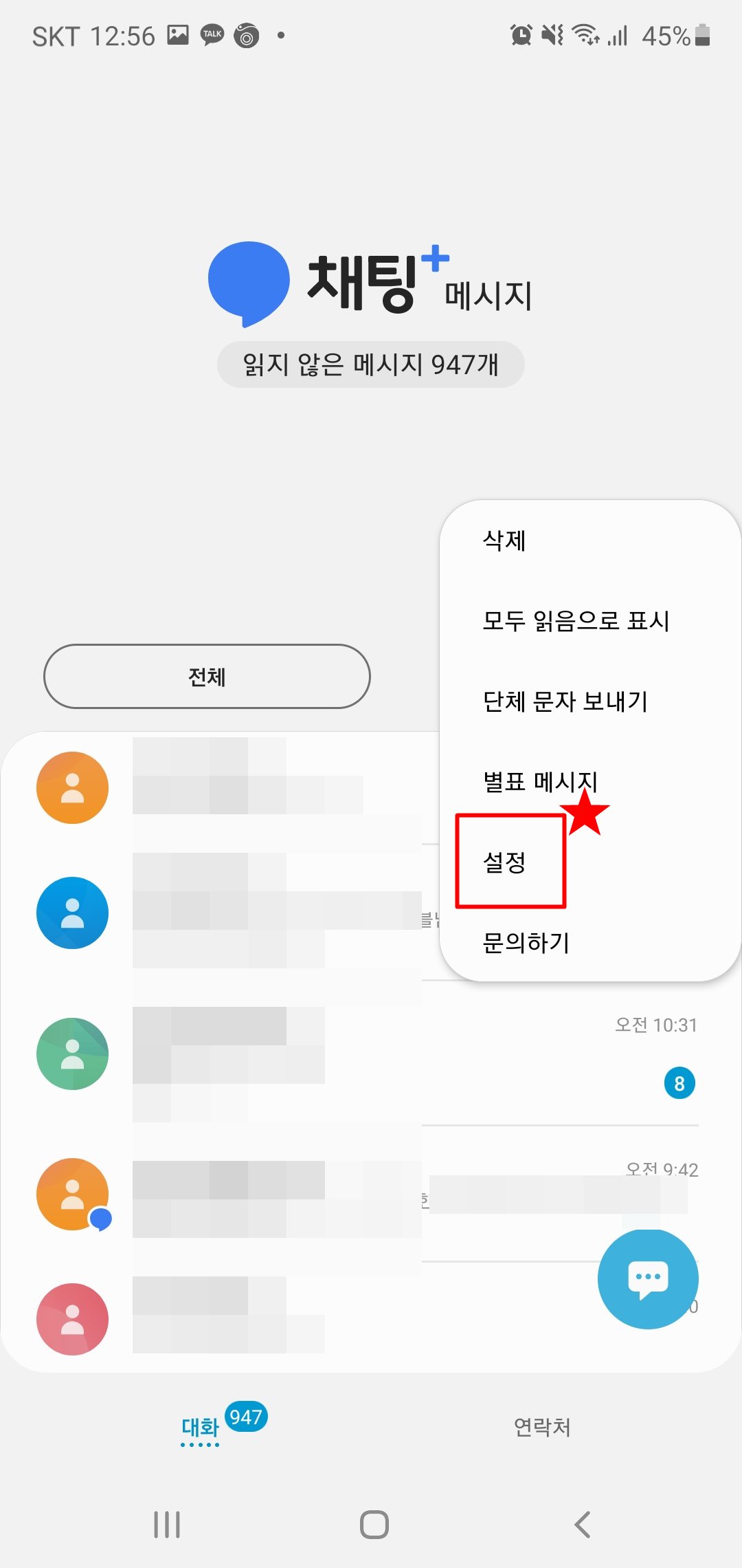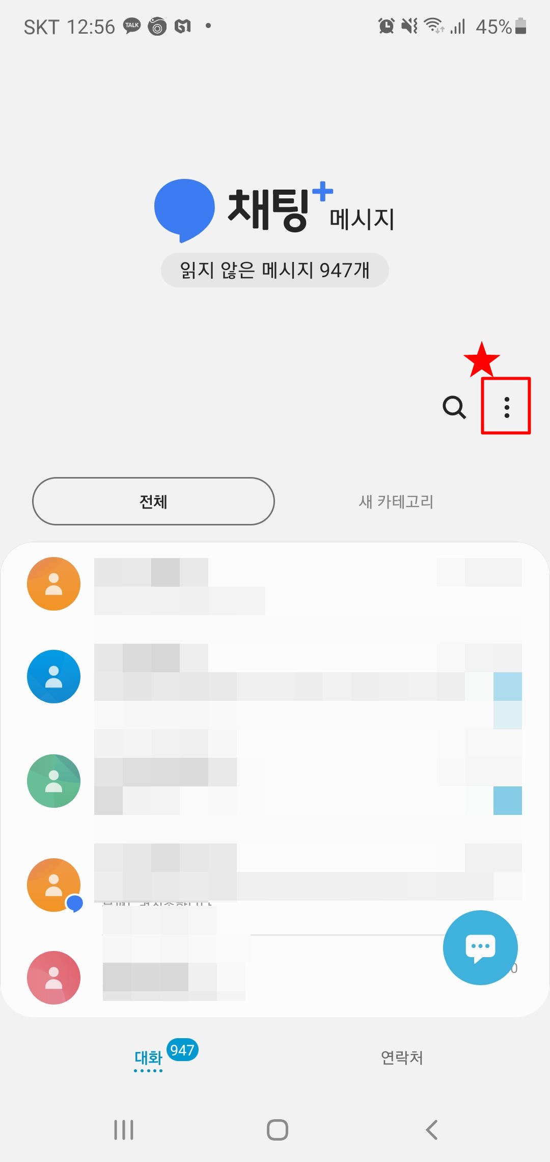 1. 먼저 휴대폰의 문자메세지로 들어가주세요.