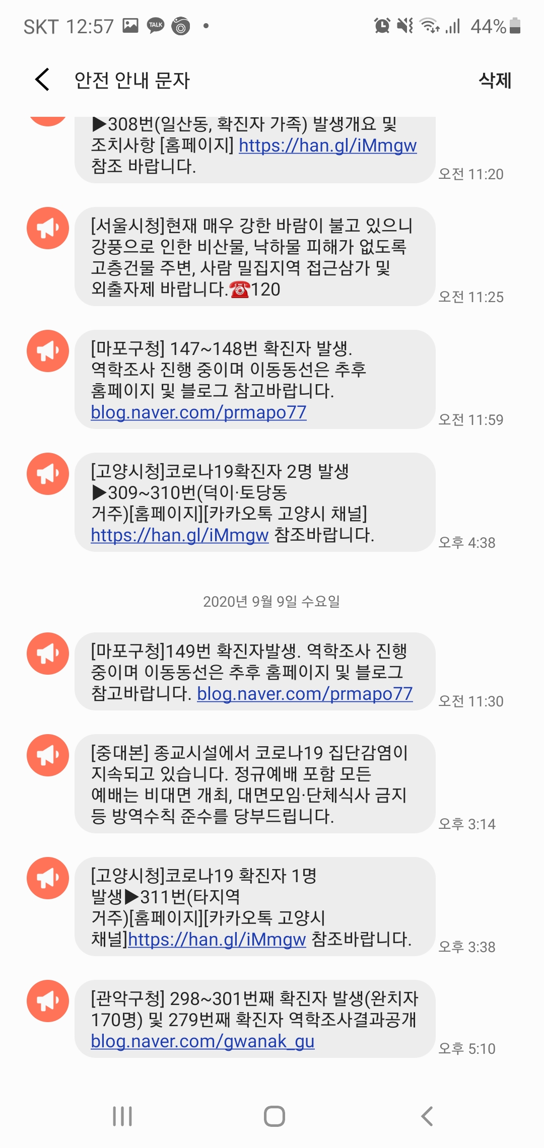 이렇게 해주시면 더이상 재난문자 알림을 울리지 않습니다. 하지만 재난문자는 말 그대로 재난문자 입니다. 코로나19가 심각한 상황에서 알림을 끄시더라고 수시로 참고를 해주시면 안전을 시키는데 좋다고 생각이 듭니다.