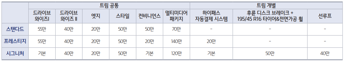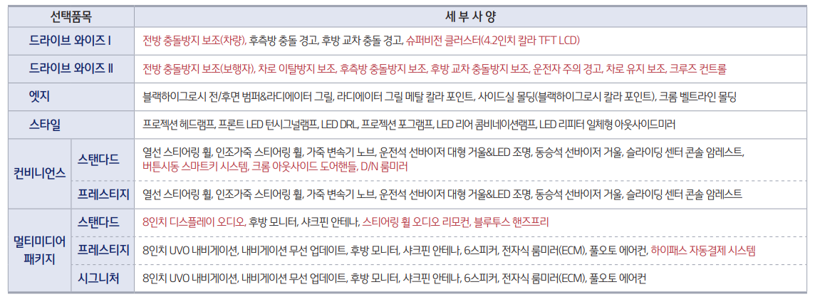 ※프레스티지 : 멀티미디어 패키지와 하이패스 자동결제 시스템 동시 선택불가