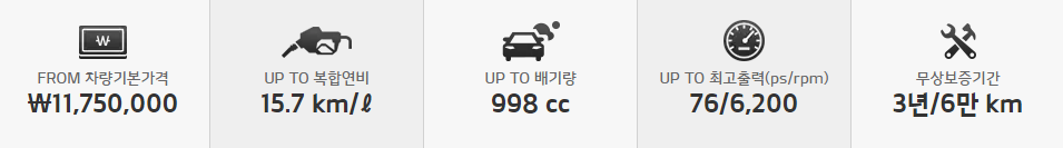 차량 구매에서 가장 중요한 것이 가격입니다. 트림별 가격이 상이하니 하단의 가격표에서 확인 하겠습니다. 두 가지로 먼저 분류가 됩니다. 1.0가솔린, 1.0가솔린(밴)으로 분류 됩니다. 분류 별로 가격표 확인 해 보겠습니다.